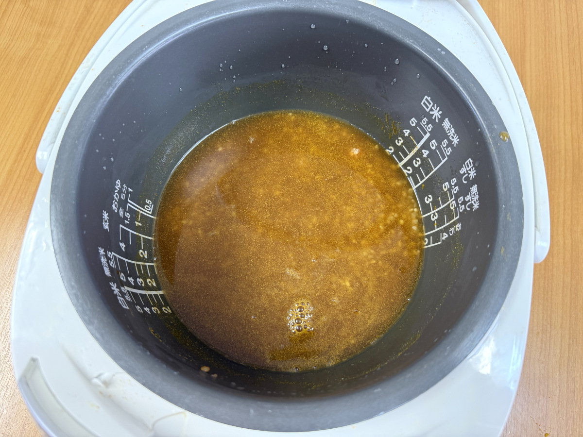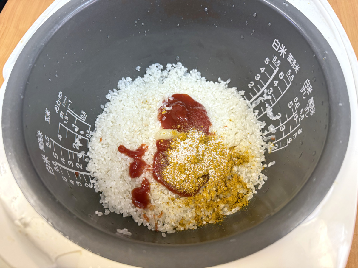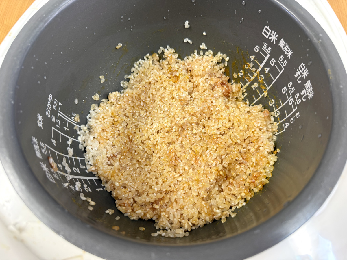 1. 米を研いだら調味料を入れてよく混ぜる。