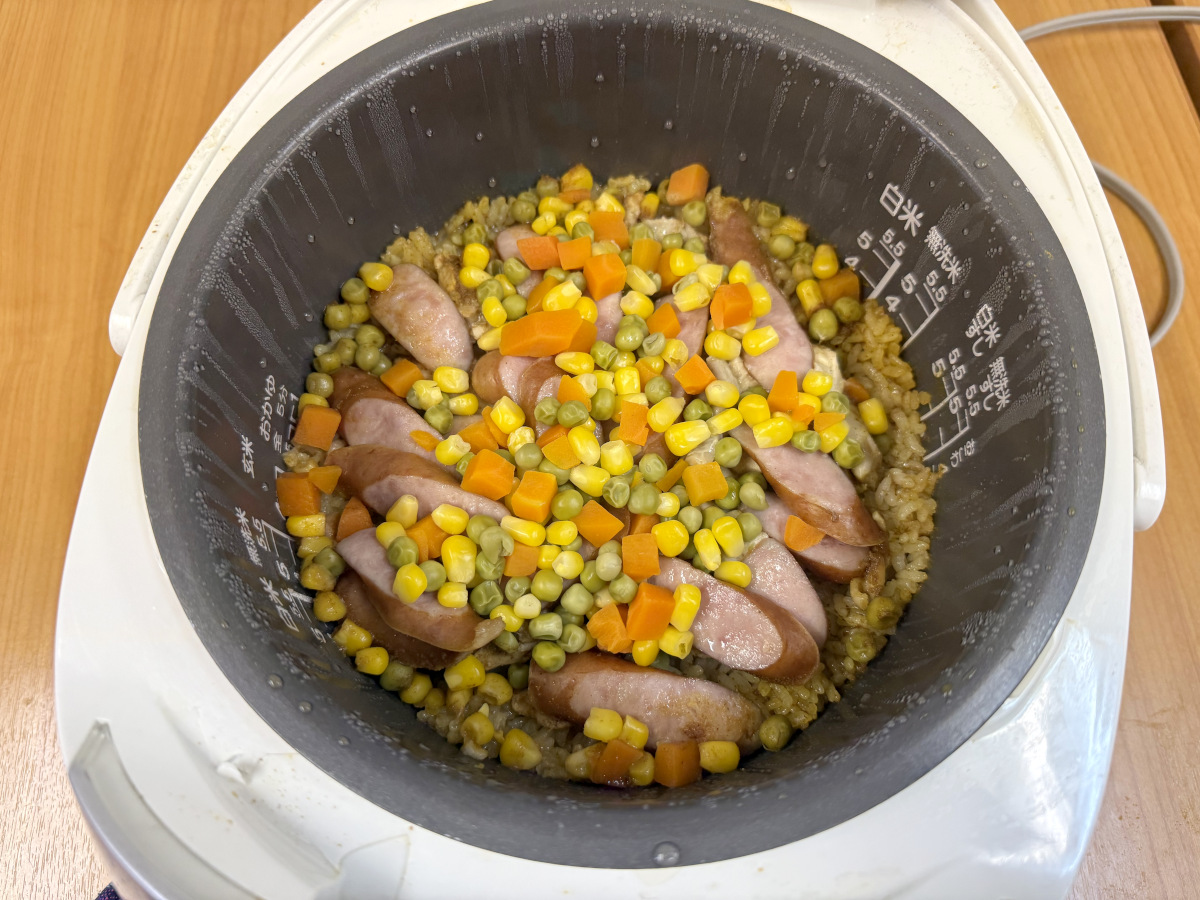 見た目はまあ炊き込みご飯であるが、香りは特にコーラを感じない。むしろ漂うカレーのスパイスがめっちゃウマそう! これは期待してもいいのではないでしょうか!!