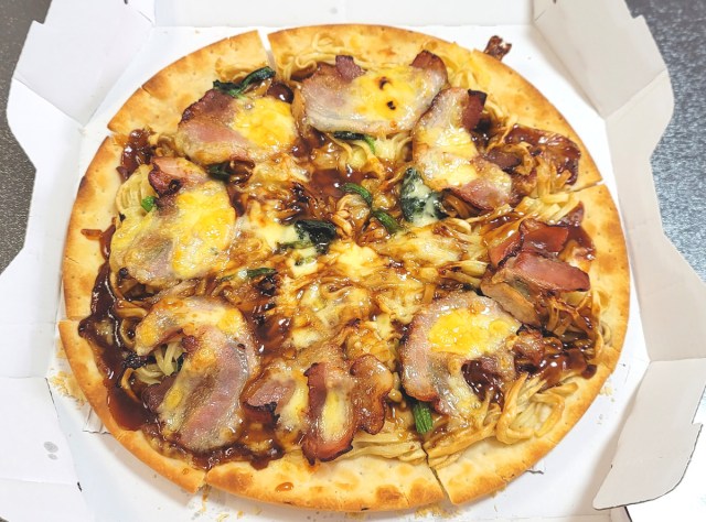 ピザハット×天下一品「こってり風ラーメンピザ」が、あまりにも想像を超えてきた / まさかこれほどとは…