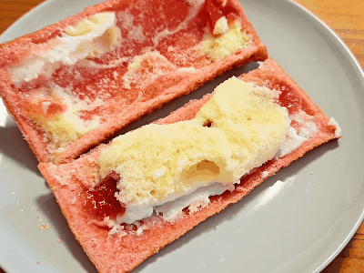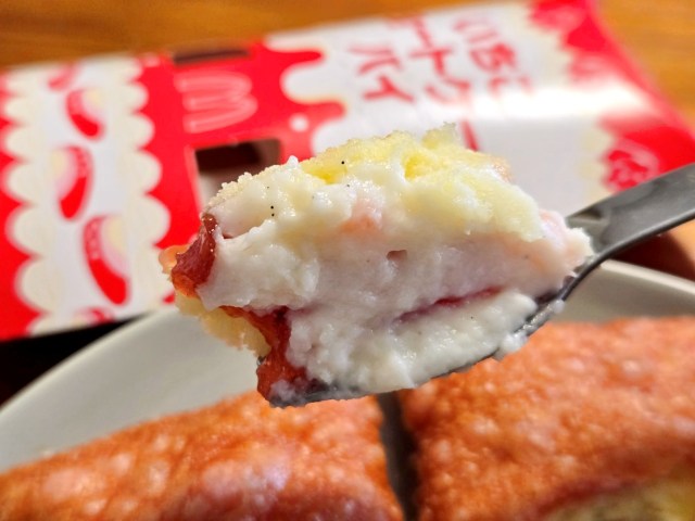 いちごフィリングと、ミルククリーム、そしてケーキ生地の3層になっているようだ。こうやってみるとちゃんとショートケーキのような見た目をしていておいしそう!
