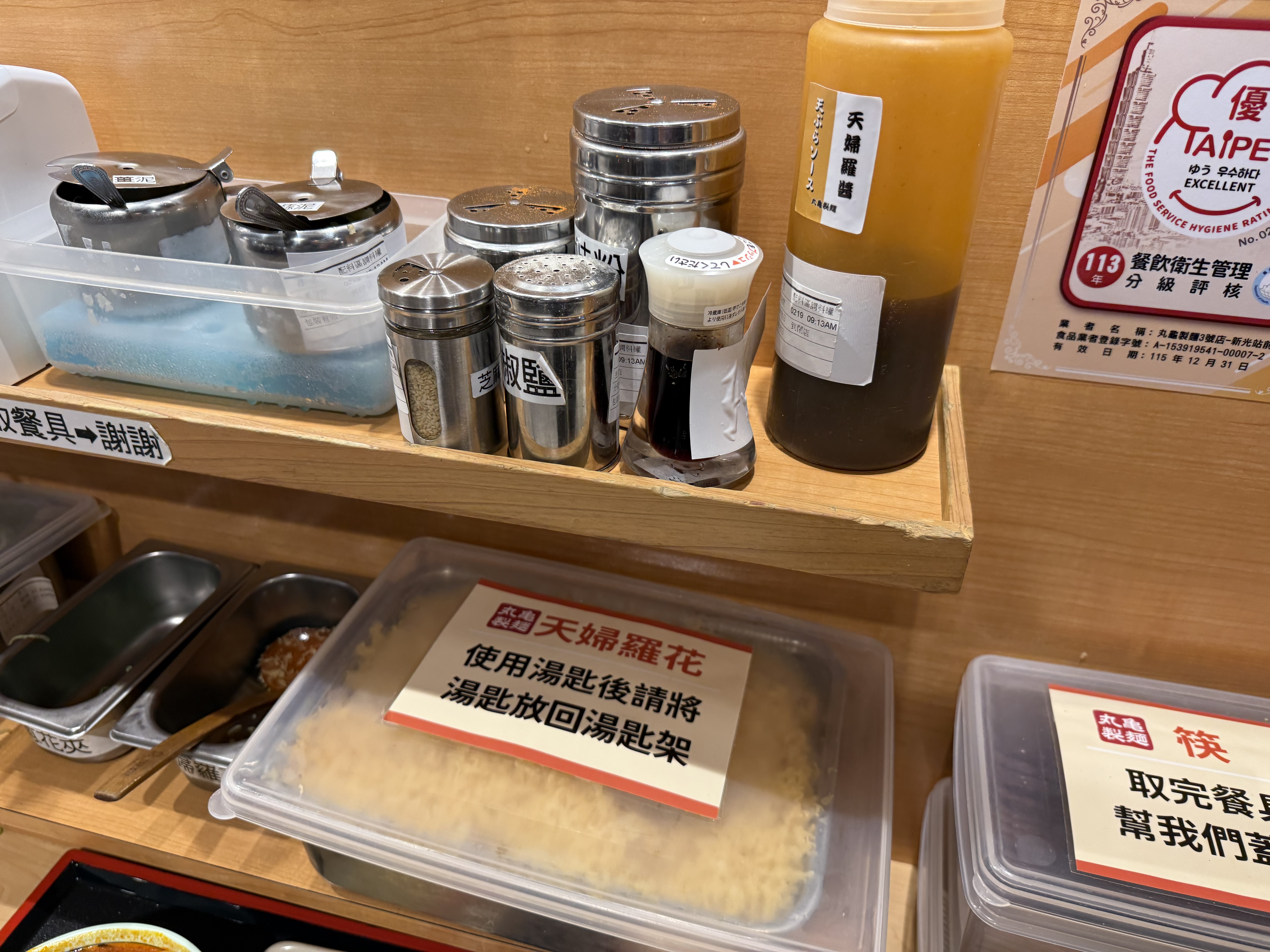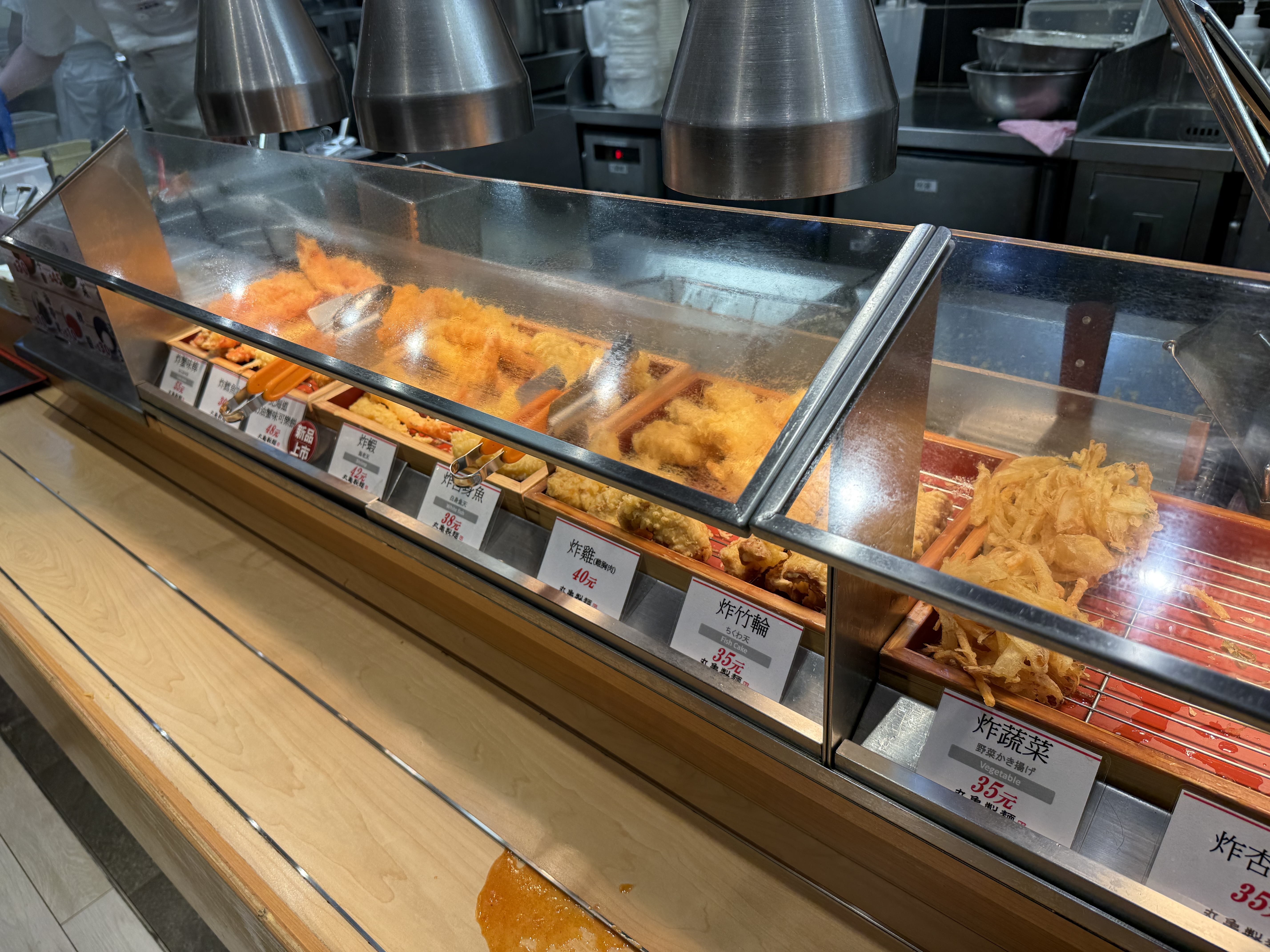 また天ぷらも「餃子」があるなど多少の違いはあるが、提供スタイルなどは日本とほぼ同様。薬味も青ネギや天かす入れ放題は同じで、インドネシアの「唐辛子入れ放題」のような、台湾独自のサービスは発見できなかった。