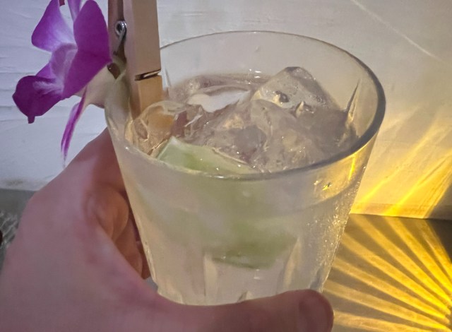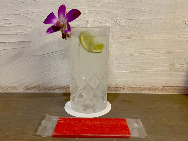 グラスにはライムと、南国らしい蘭の花が添えられている。見た目からして美しい。ひと口飲むと、すっきりとしたジンの香りにトニックウォーターの苦味がキレイに調和していて、これが本当に美味い。