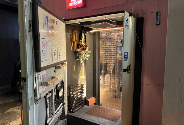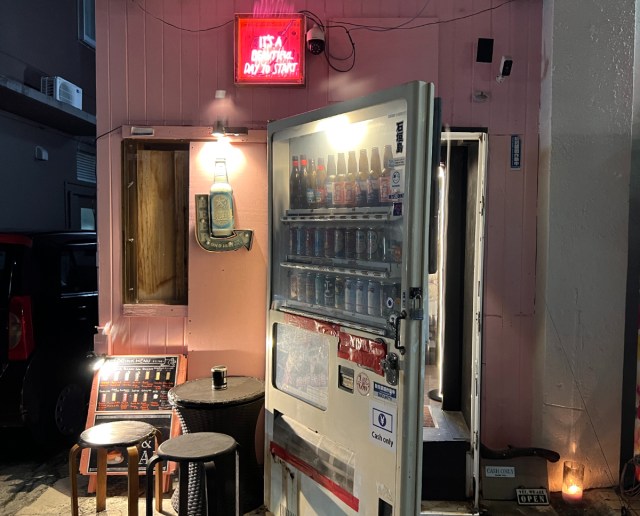 さらに子供の頃、木の上に秘密基地を作っていたというマスターにとって、このワクワク感をお店で再現するのは自然な流れだった。入り口の自販機は、前オーナーが自販機設置の仕事をしていた縁で譲り受けたもの。それを「隠れ家」演出のダミー扉に活用したとのこと。
