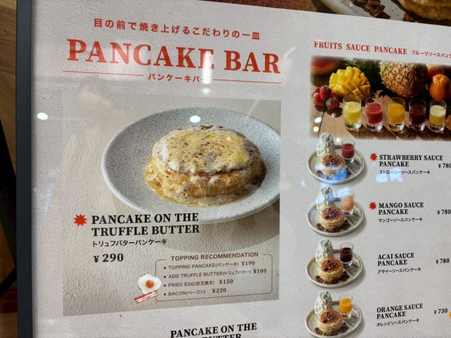 さらにトッピングがなかなか攻めていて、フレッシュフルーツソースは注文ごとにブレンダーで仕上げ、トリュフバターはバーナーで炙ってくれるらしい。