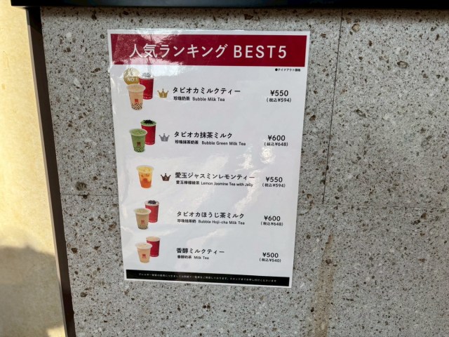 ちなみにこの店舗でもテイクアウト人気ランキング3位とのこと。飲んだことない方は、是非試してみてほしい。
