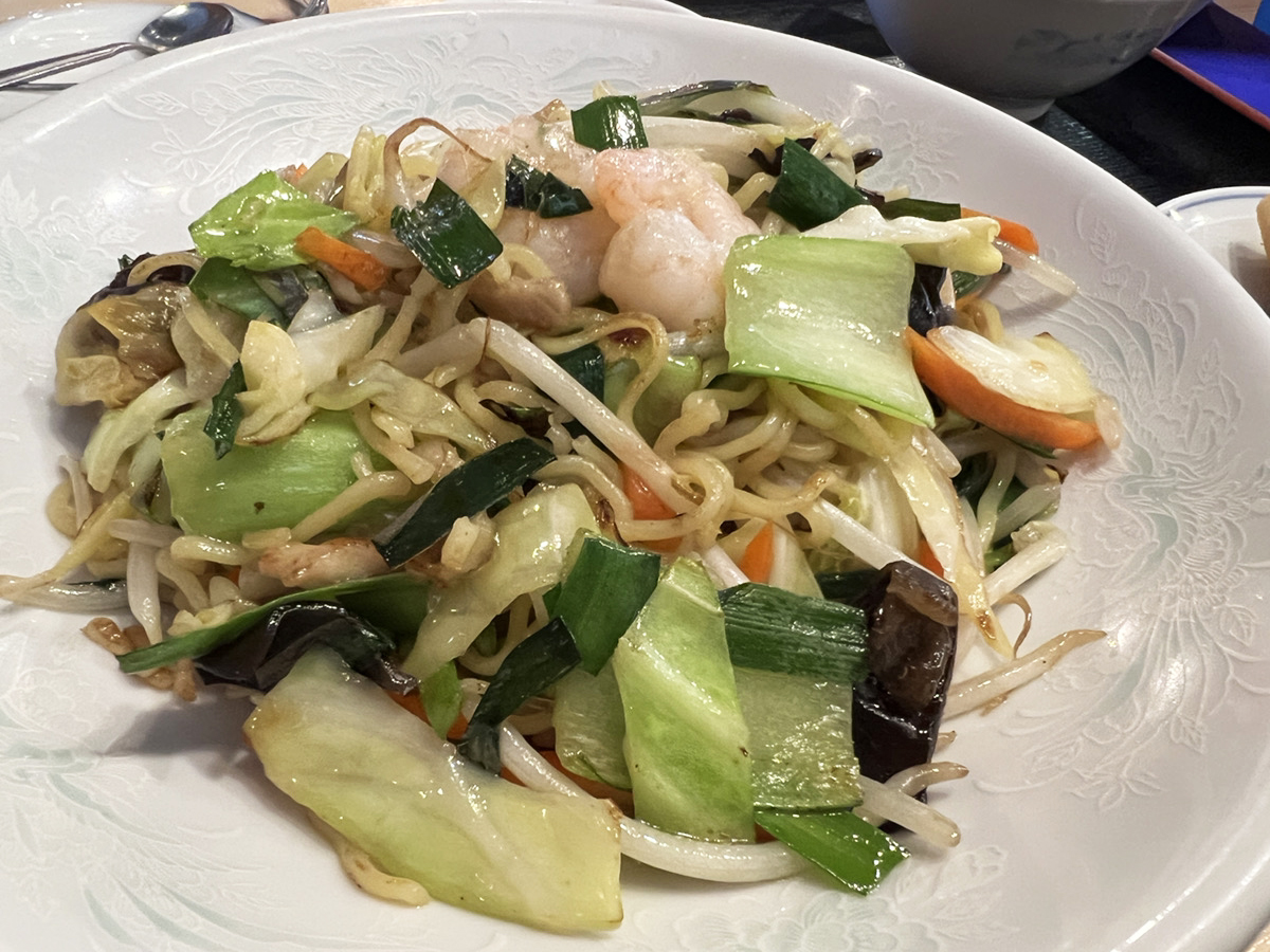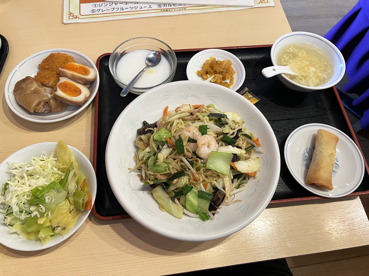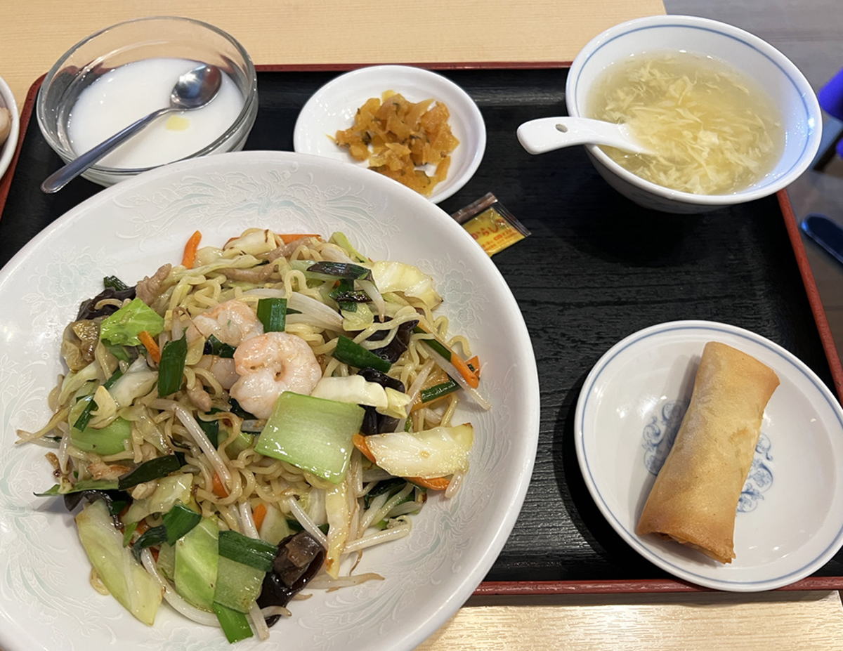 店内のメニューによると、ランチメニューは外の看板よりいっぱいある。定食だけでなく、丼も麺類もあってほぼ全部990円なので、上海風焼きそば(税込990円)をしてみたところ……