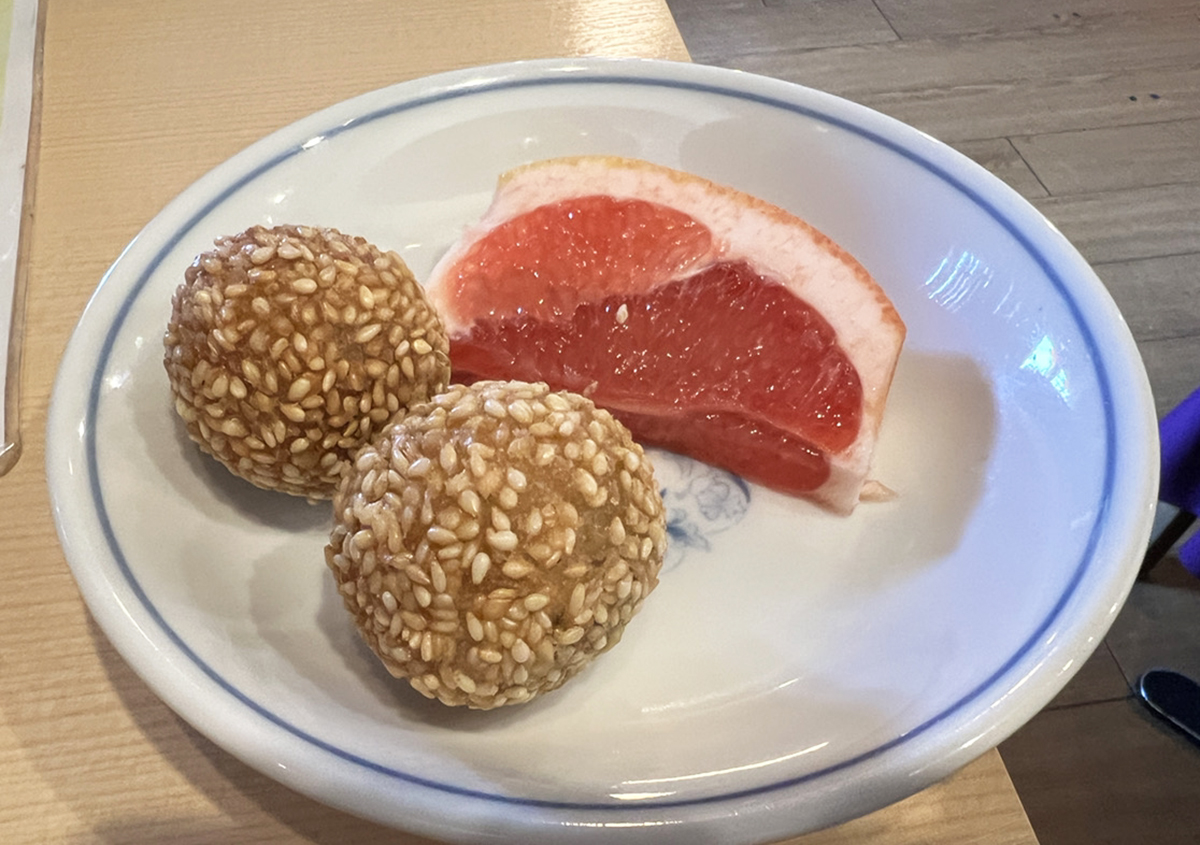 豚足、コロッケ、煮卵、ゴマ団子、ピンクグレープフルーツなどが並んでいるのだ。むしろ、サラダっぽい野菜は2品のみ。サラダバーとは? サラダバーの定義について考えずにはいられないサラダバーである。