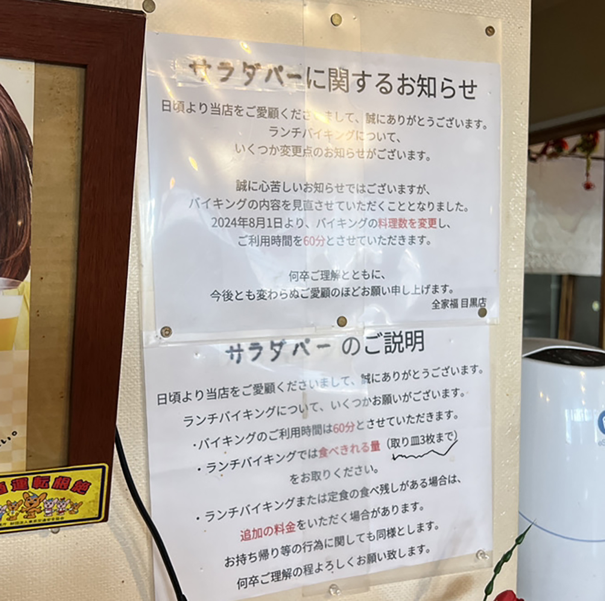 そのサラダバーコーナーに貼られていた貼り紙によると、これでも料理数が少なくなったっぽい。内容を変更する旨が「心苦しいお知らせ」と告げられていた。いやいや十分っす。