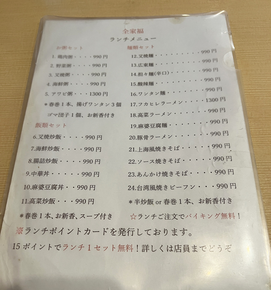 そんなわけで、看板との出会いから、入店、実食まで、進めば進むほど魅力が湧きだしてきた『全家福』のランチ食べ放題。「思ったより良い」が連続するところに名店を感じた店だった。