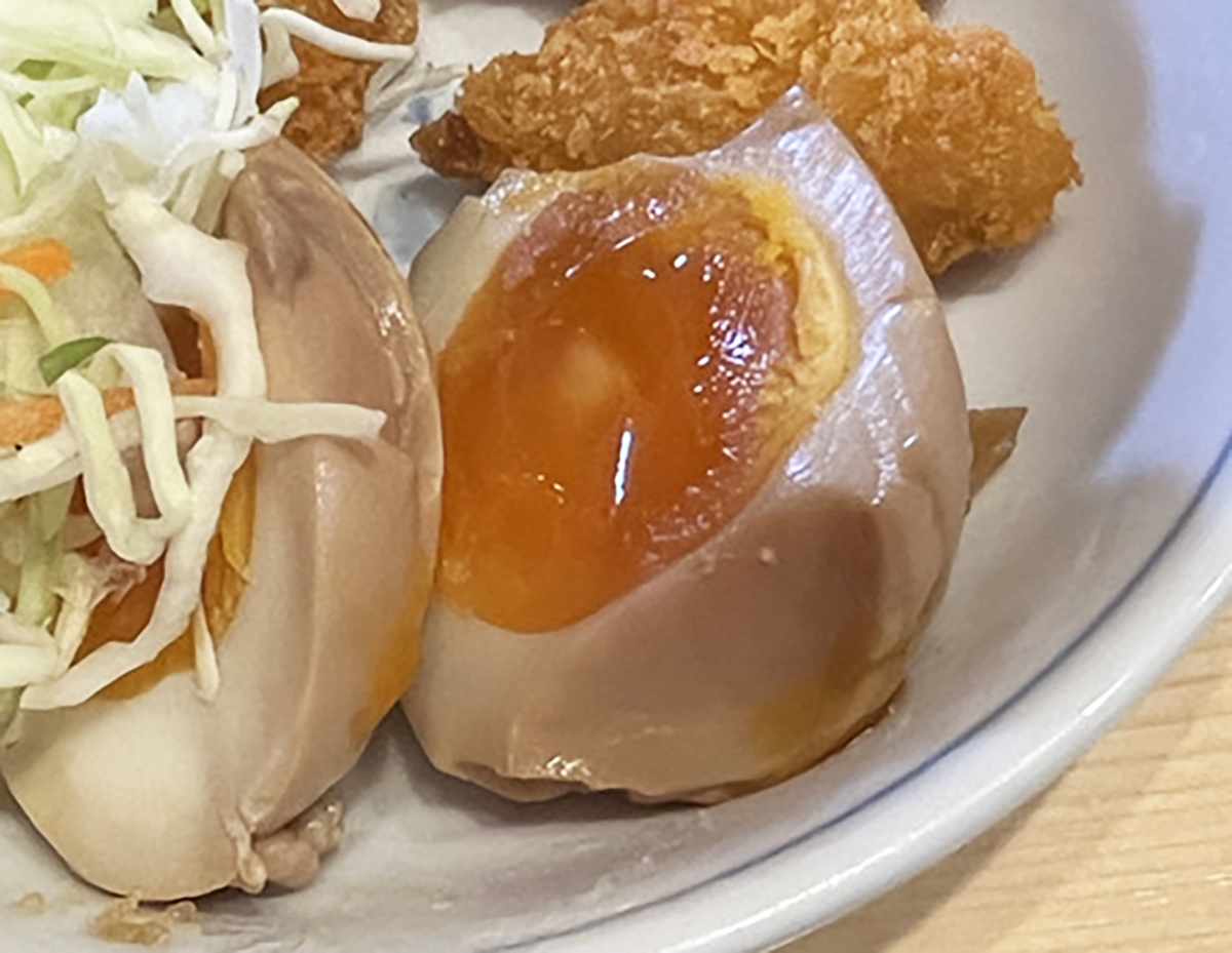 看板から想像できるレベルをはるかに超えてきた。「宇宙の果ては人間の想像力の果て」という言葉があるが、ガチ中華は人間の想像力を超越しているのかもしれない。中でも、ガチ中華ランチを何軒も巡ってきた私が注目せざるを得なかったのは煮卵である。