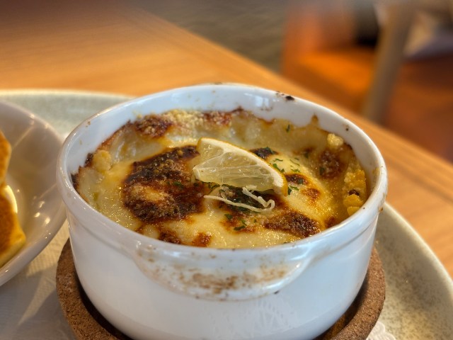 そして「バナナとピーカンナッツのブリュレ」は定番の「キャラメルナッツブリュレ」をアレンジしたもの。これ、カスタードの風味が濃厚で、ピーカンナッツのカリッとした食感もあってめちゃくちゃ美味しかった〜。