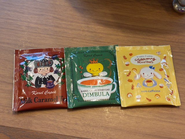 ドリンクバーのほか、カレルチャペック紅茶店のティーバッグ(3種)もついてくる!