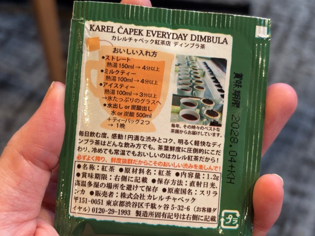 ちなみに、カレルチャペック紅茶店のティーバッグは裏に詳細な味わいの説明や飲み方が書いてある。3種類あったけど、食事系のときはスッキリしたディンブラ、甘いものを食べてるときはフレーバーティーを飲むのが相性いいなあと思った。