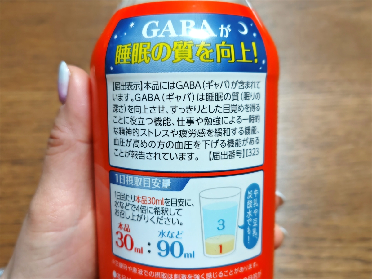 4倍希釈・砂糖不使用に加えて、アミノ酸の1種であるGABAを1杯あたり100mgも摂取できるのだそう。