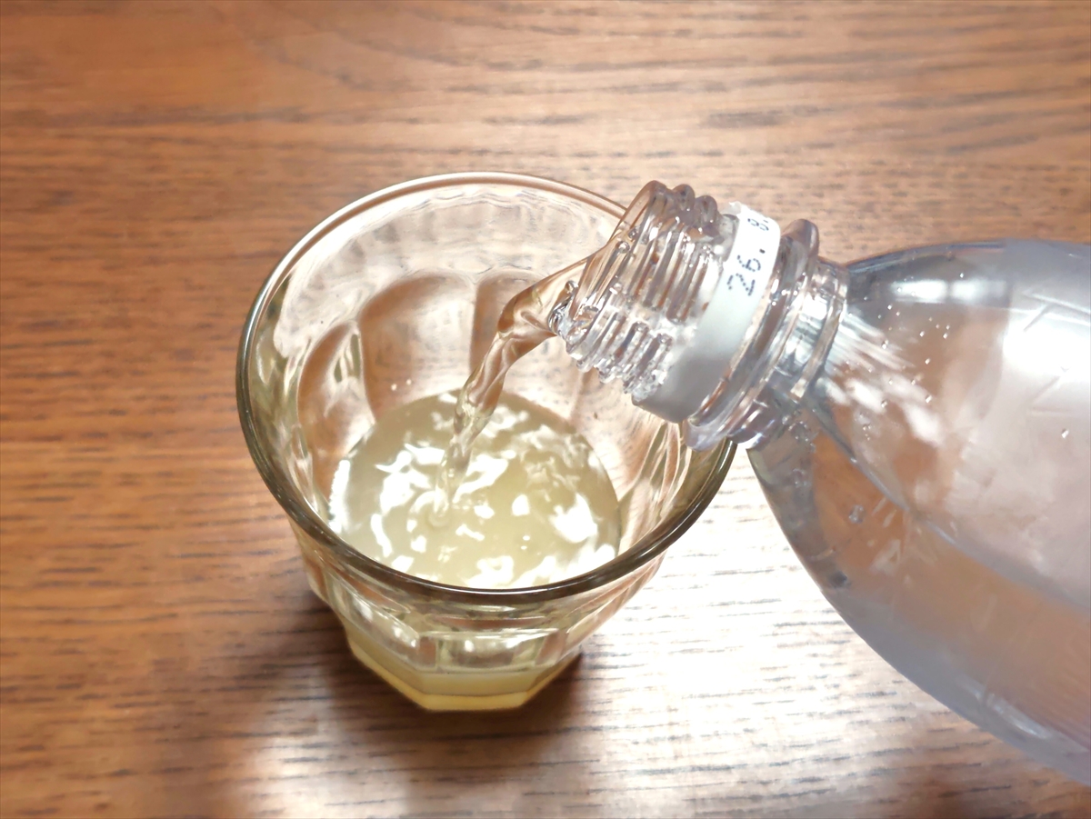 まずは炭酸水で割ってみることに。グラスに睡活ビネガーを注いでみると……