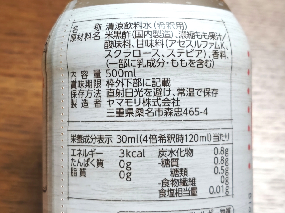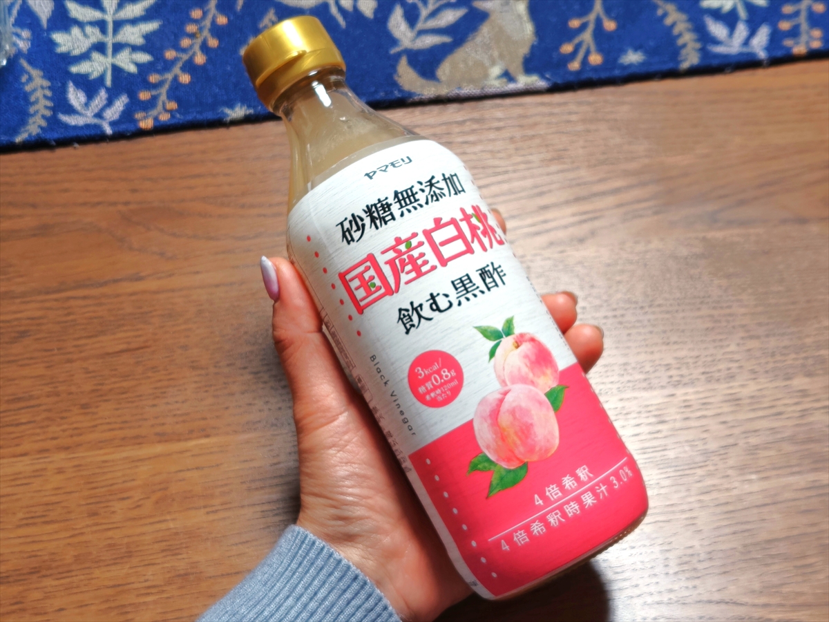 ▼せっかくなので、ほかの飲むお酢も試してみた。まずは『砂糖無添加 国産白桃黒酢』