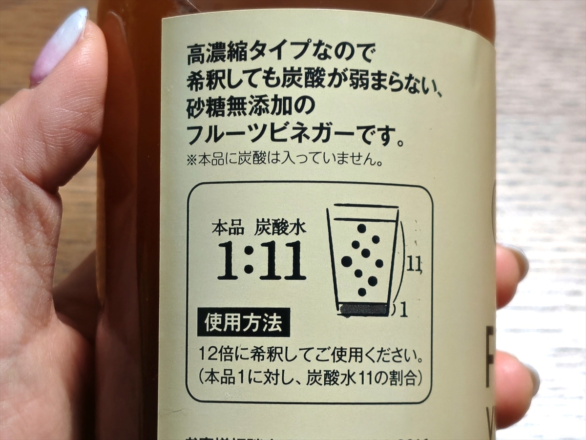 こちらも砂糖不使用だが、リンゴ酢をベースにザクロやショウガを組み合わせており、クラフトドリンクのようなオシャレな味わいが特徴。水や炭酸で割ると、ジュースというよりもノンアルコールカクテルのような仕上がりになる。
