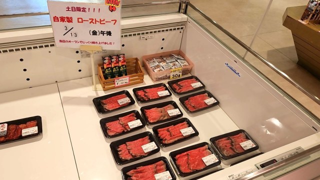 それから、土日限定で販売されている「自家製ローストビーフ(100gあたり535円)」も発見。
