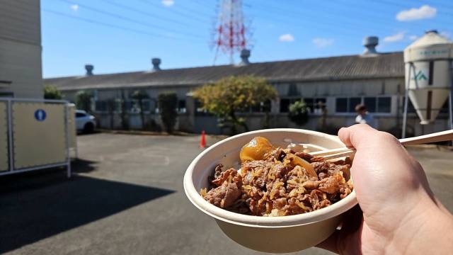 まさか、牛舎の前で牛丼を食べる日が来るとはな。毎日当たり前のように食事をしているけれど、改めて「命」をいただいていることに気づかされたよ。牛さん達には感謝をしなくては。