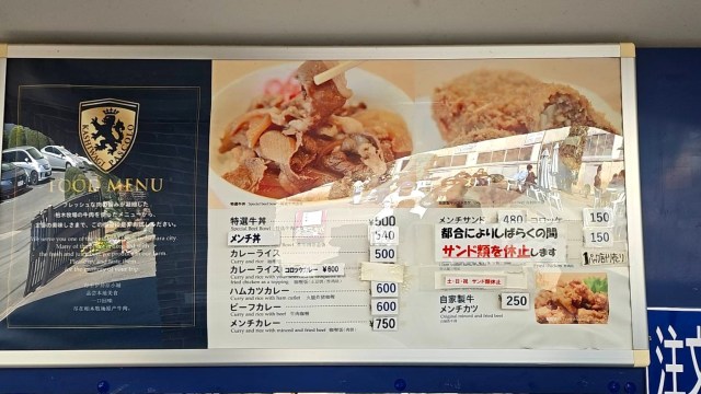 お昼時ということもあり、お客さんで大賑わい。ちなみに、牛丼以外にカレーやメンチ丼など美味しそうなメニューが用意されていた。
