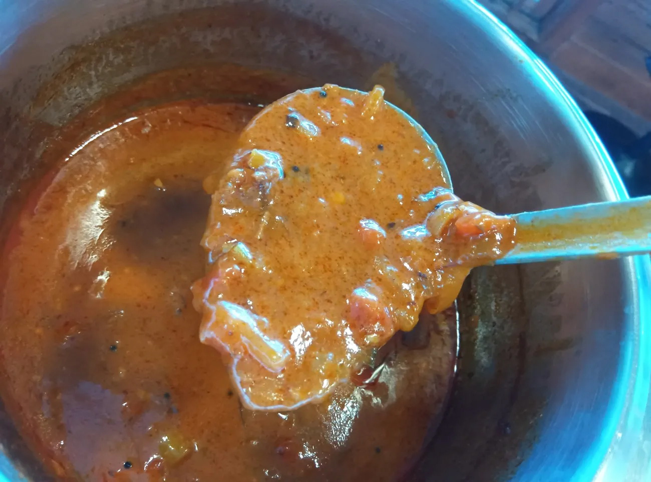 カレーのベースはマッサマンカレーなので、ソースの質感もタイ風のサラサラタイプ。原材料にもコリアンダーとかナツメグとかガランガルとかが記載されている。また、肉はコロッとしたものが3~4個入っていた。