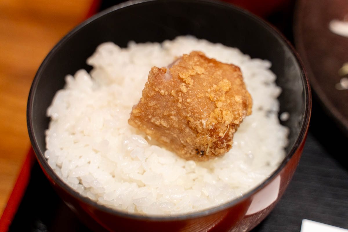 私が頼むのは、もちろん「まぐろ竜田揚げ(1100円)」。ほどなくして出てきたのがこちら。