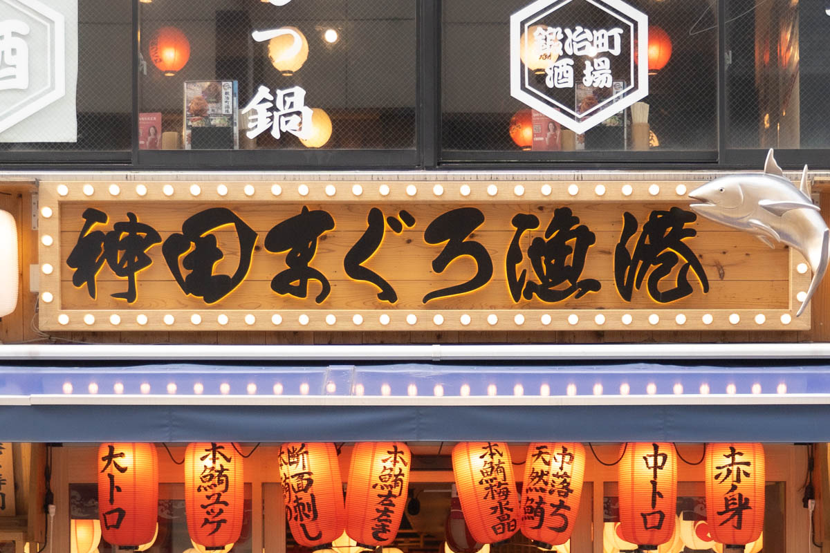 それが今回紹介する「神田まぐろ漁港」。場所は神田駅から徒歩1分。東口から出て正面の横断歩道を渡った先。ふれあい通り沿いだ。