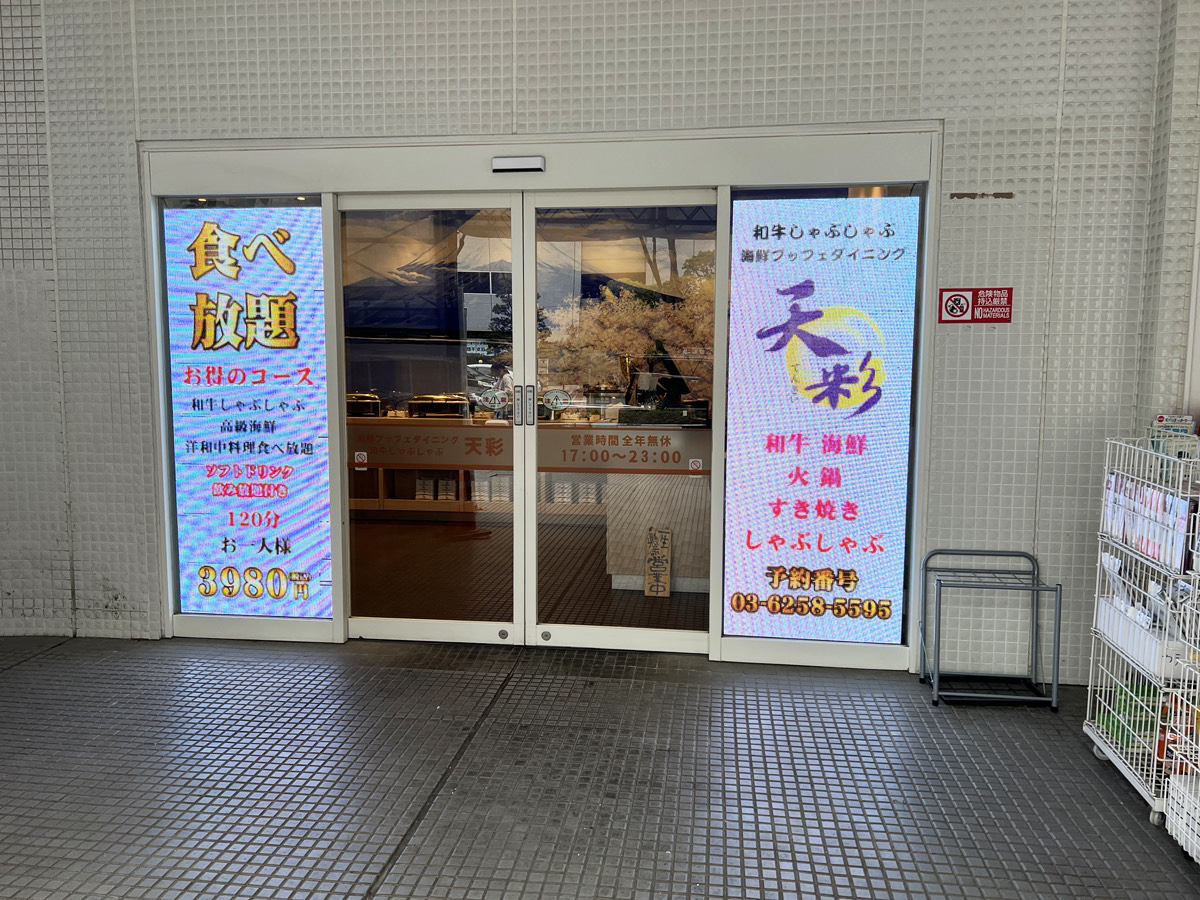 とはいえ、コスパがどうかはバイキングの内容次第とも言えるだろう。で、そこを怪しみだすと、自動ドアの両サイドのビジョンの画質の粗さがなんかうさん臭さを漂わせてる気もするんだけど、まあとりあえず入ってみた。