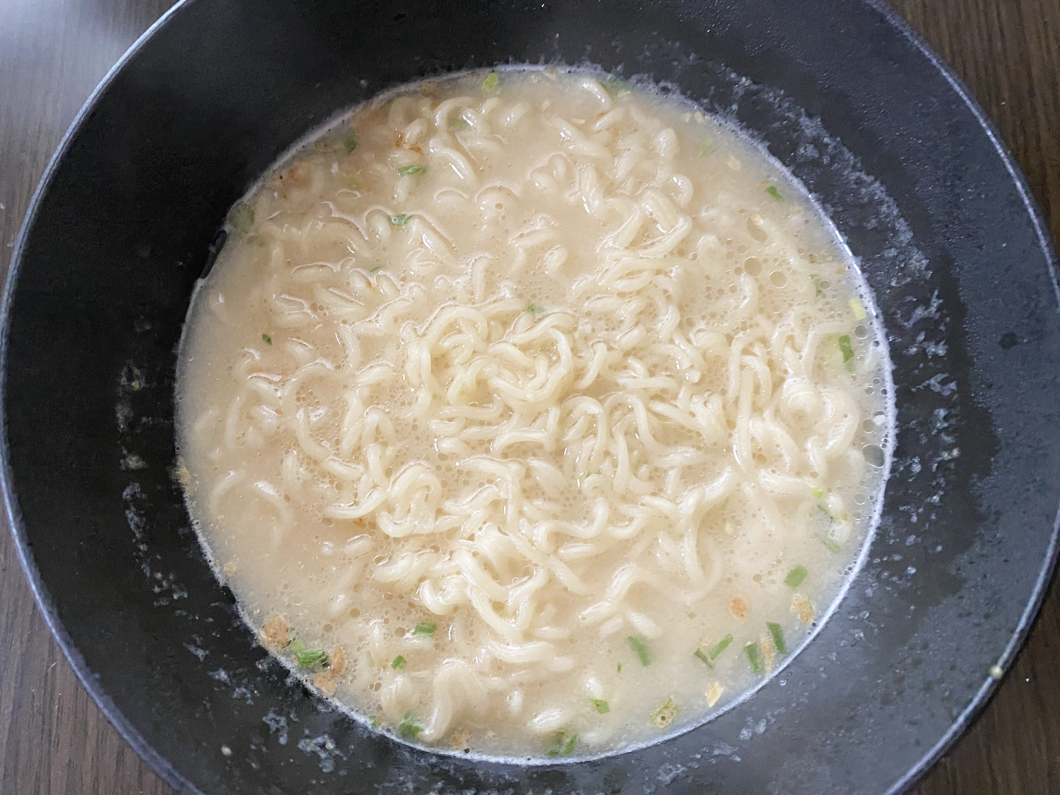 さて、福岡県の久留米市はとんこつラーメン発祥の地とも言われており、特徴はスープの継ぎ足し製法である。これにより濃厚で強い豚骨の風味、そしてスープが泡立つのだが、うまかっちゃんでもそのあたりは再現されているのだろうか。