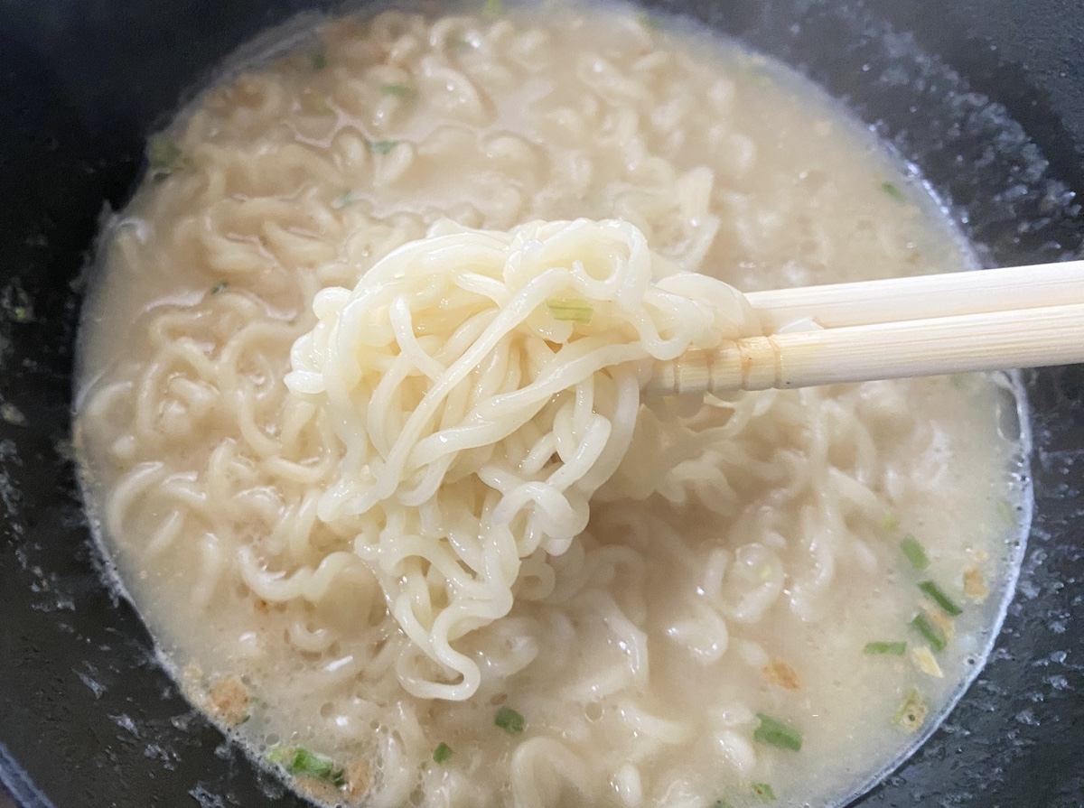 ちなみに製造しているハウス食品のリリース情報によると『久留米ラーメン特有の「脂泡」や「うま臭さ」も表現されており、この価格でこんなにおいしいラーメンを食べて良いのか?と心配になるほどの「旨さ」です』とのこと。めっちゃ言うやん。