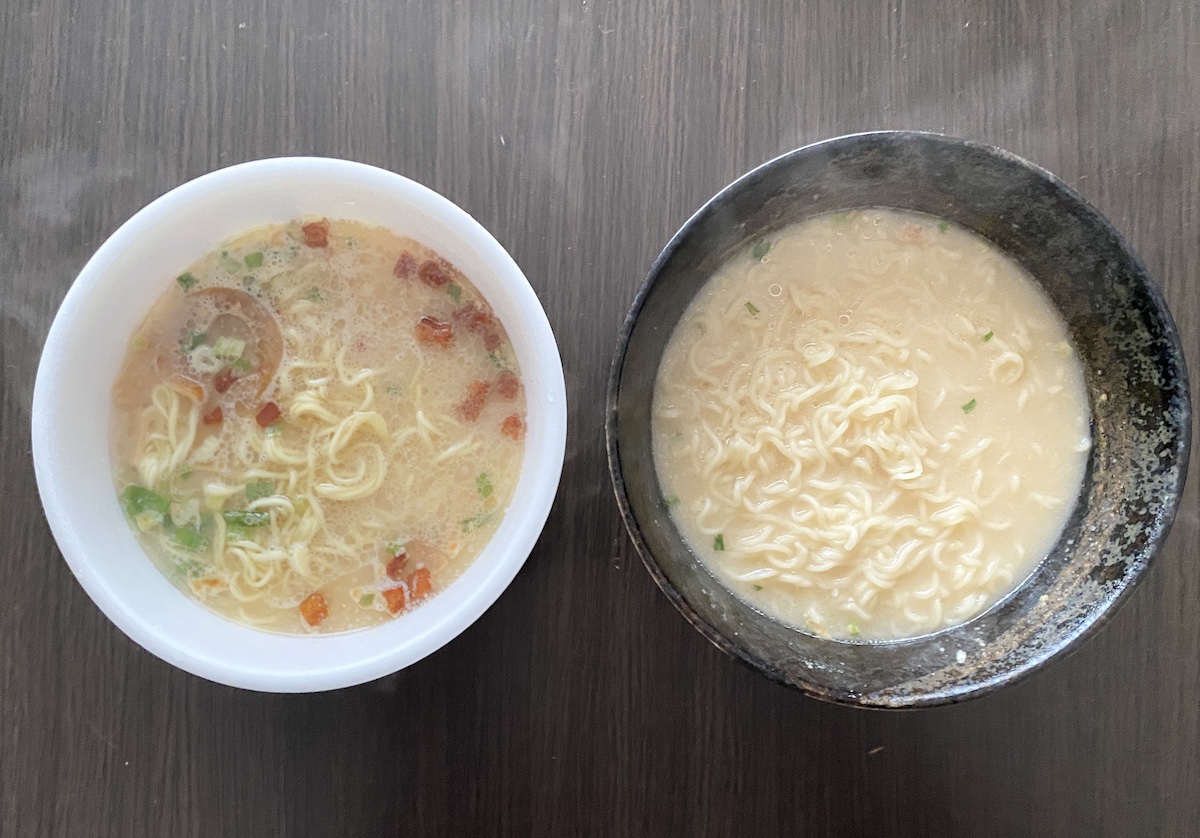 大砲、いいなぁ……! どっちも程よく臭く、とんこつがバチコン効いているのだが、大砲の方が頭1つ抜けている。カップ麺ながら、しっかりと久留米ラーメンらしさとクセになる味が再現されていた。