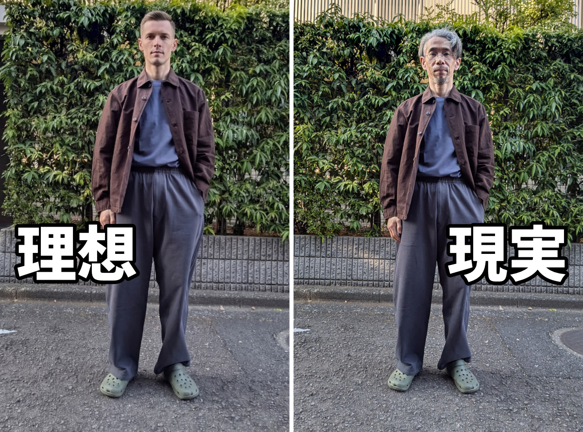 なんか違うでしょ? 何が違うかわからないけど、「和」って感じになっちゃうんだよなあ。イラストの人物は私の写真をベースにAIが生成しているので、服も身体もそれほど違いはないはず。