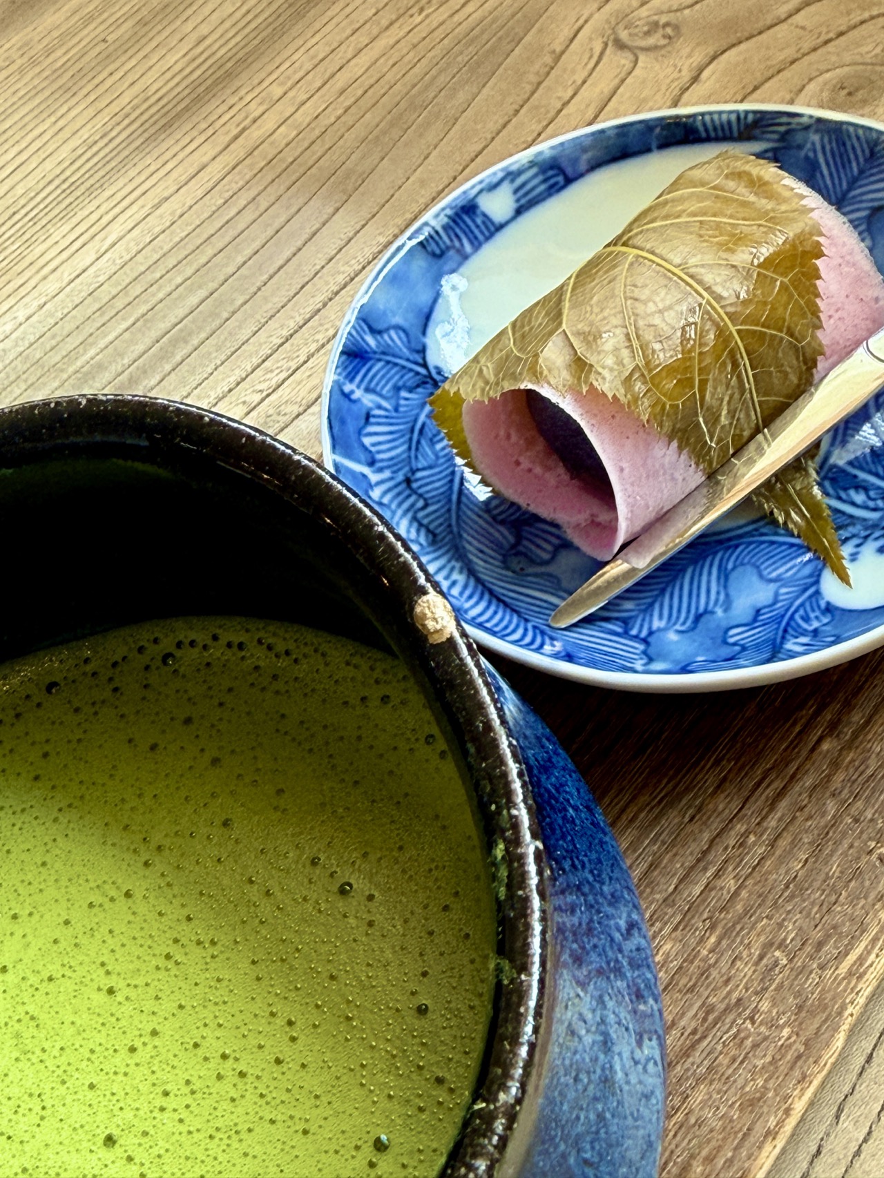 場所は豪徳寺駅からすぐ近くの、世田谷線の線路沿い。私の禁煙を成功させてくれた病院の数軒隣に、有名な和菓子さん「まほろ堂 蒼月」がある。桜餅とお抹茶をいただき、フ〜ッと一服。実に健康的で、風流な一服だ。
