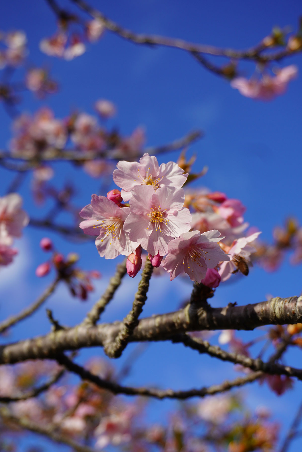 撮影した日は曇りで、その上咲いているのは数本。本格シーズンには程遠かったが、それでも多くの人が近くで撮影していた。この熱気こそまさに春。