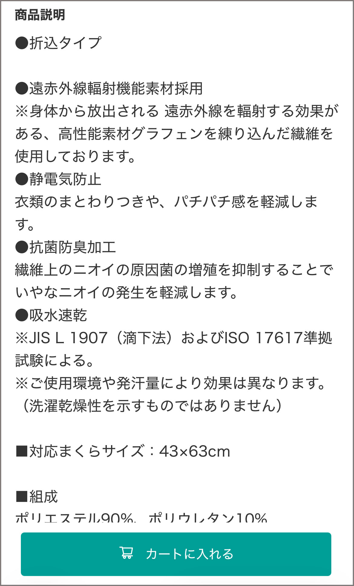 このあたり、ニトリはさすがにプロ。踏み込み過ぎたら危険なのを知り尽くしたような書き方であるが、先述のとおり「遠赤外線」の記載ははっきりとある。