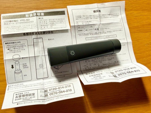 参考リンク:ニトリ「LED懐中電灯」
