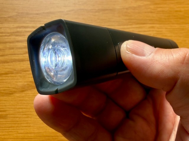 「強弱」や「フラッシュ点滅」などのモードは一切無し。これで良い。暗闇でパニックになっている時に、スイッチ1つで光れば十分だろう。余計な機能を削ぎ落としたシンプルさが、あらゆる人にとって使いやすいのである。