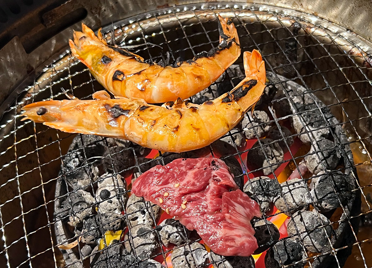 お肉の味自体は選ぶコース(食べられるお肉)にも依るので一概には言えないが、私が食べた範囲(プレミアムコース)では「価格を考えたらかなりコスパが高い」という印象。肉質は柔らかく、普通に美味しかった。あと、エビも大ぶりで最高!