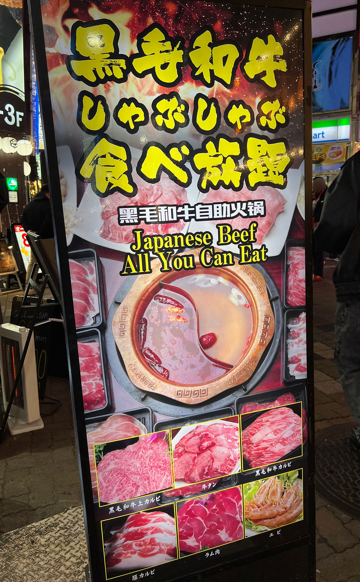 そんなときに見つけた「黒毛和牛・しゃぶしゃぶ食べ放題」の看板。無視できるはずがない。
