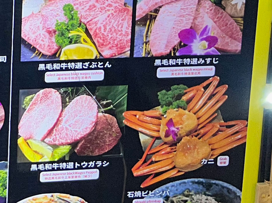 治安面で最高とは言い難い街ではあるが、店自体に怪しさは全くない。それどころか、店の前に貼られている他の写真では食べ放題のコースと料金、それに食べ放題対象メニューが紹介されていて、安心感がある。ここは大丈夫だろう。