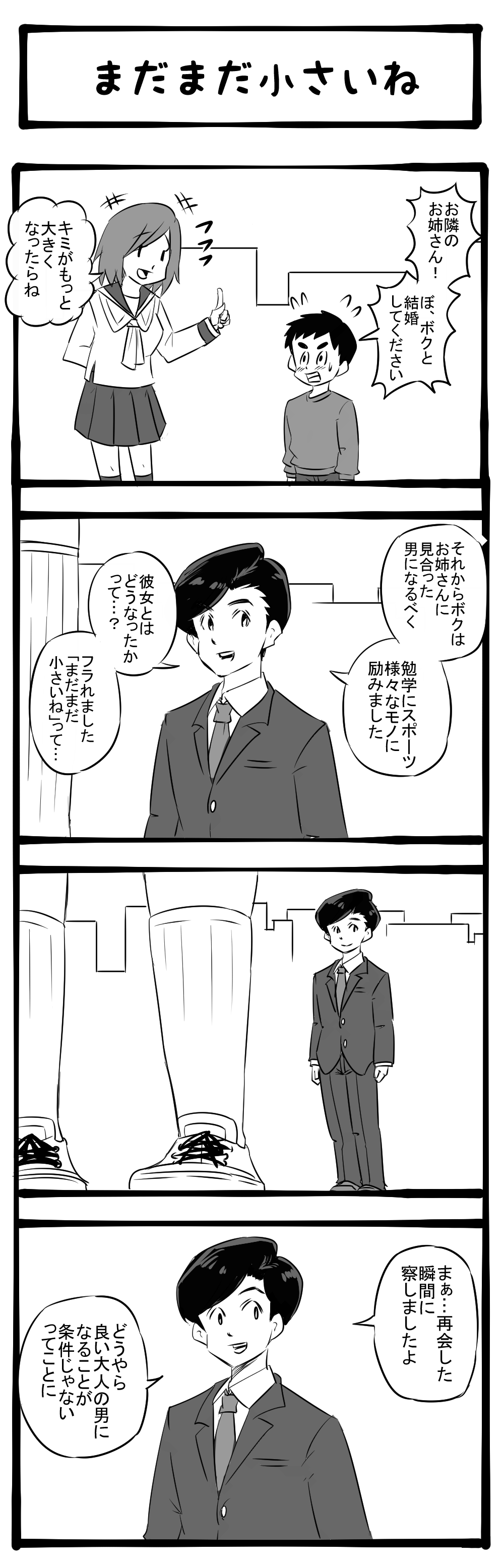 無理ゲーだったわ! お隣のお姉さんへ愛を伝えた少年! 四コマサボタージュBYD第330回「まだまだ小さいね」