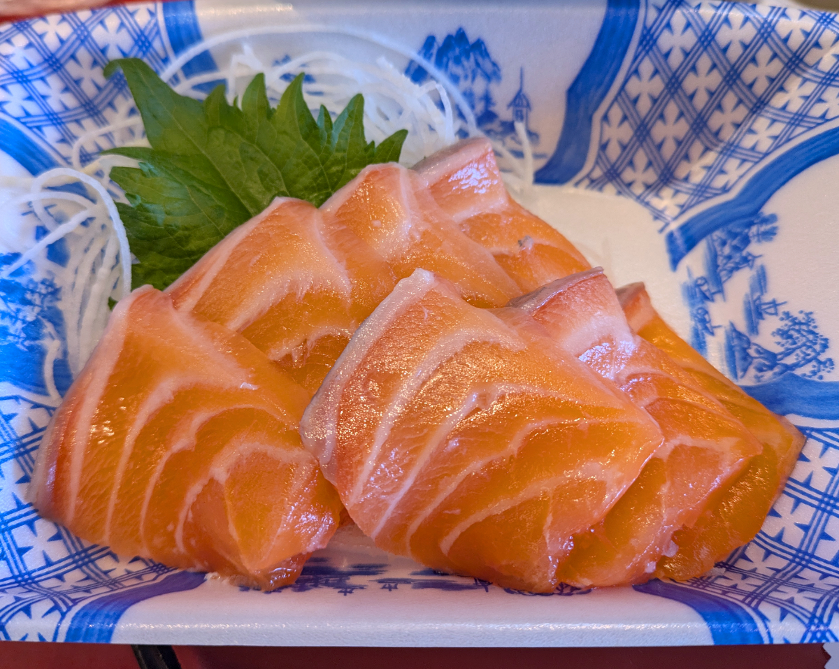 一方のサーモンは脂が乗っていて、ネットリとした甘さが口に広がる。たまたま選んだ桜ブリとサーモン、対照的な肉質の2つの魚を選んで正解だったかもな。交互に食べるとそれぞれの味が引き立つ。