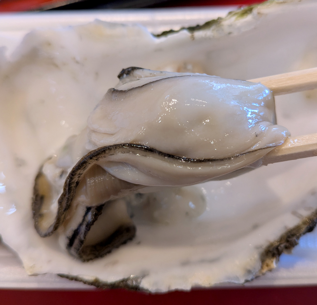 そして今日のラインナップの目玉の一品は生牡蠣だ。牡蠣を生で食べるなんて久しぶり! どこ産なのかを尋ねなかったが、小ぶりながらもトロけるような食感に感動を覚える。