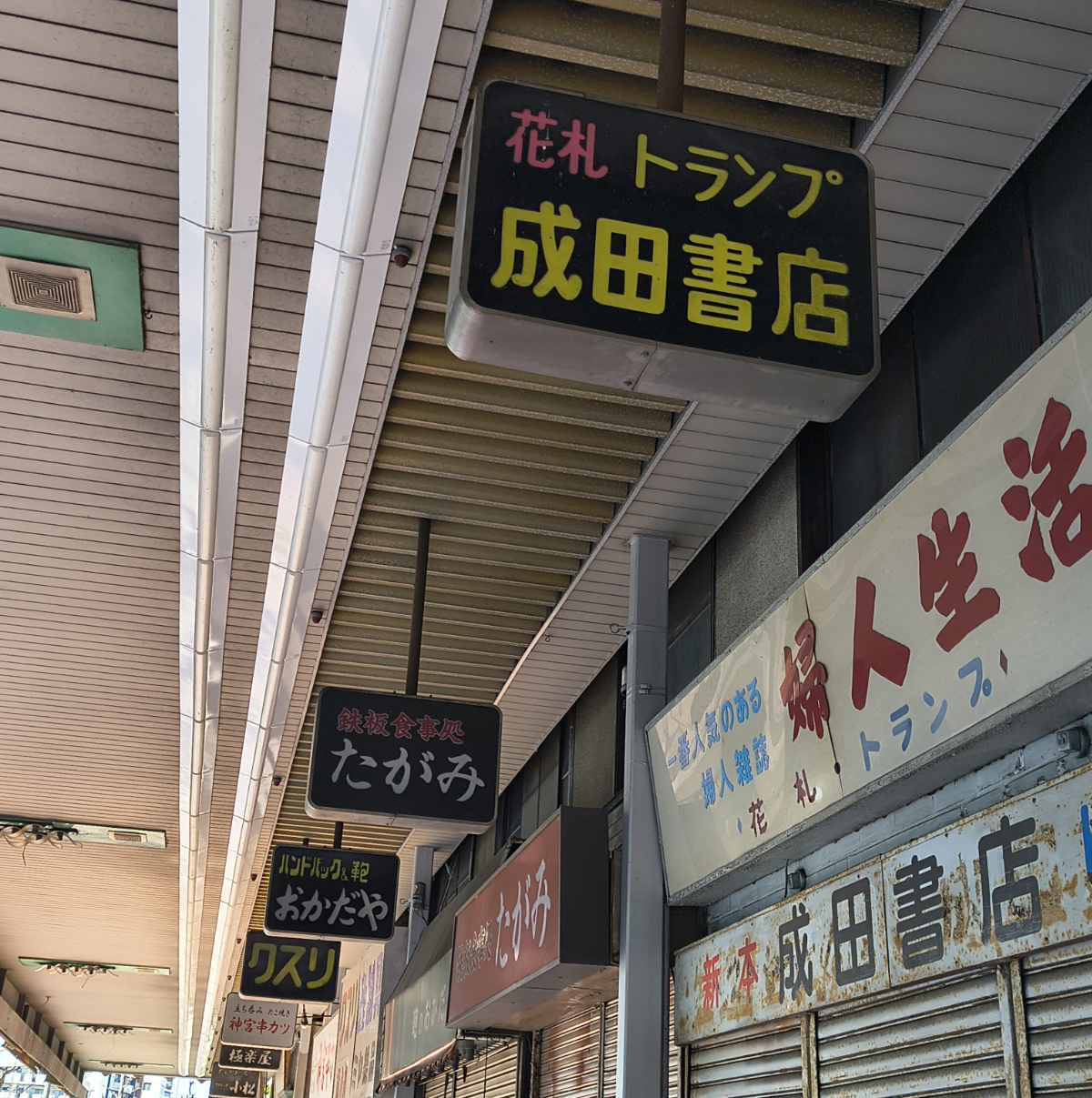 ▼JR熱田駅のアーケードには、昭和を感じさせる看板が並んでいた