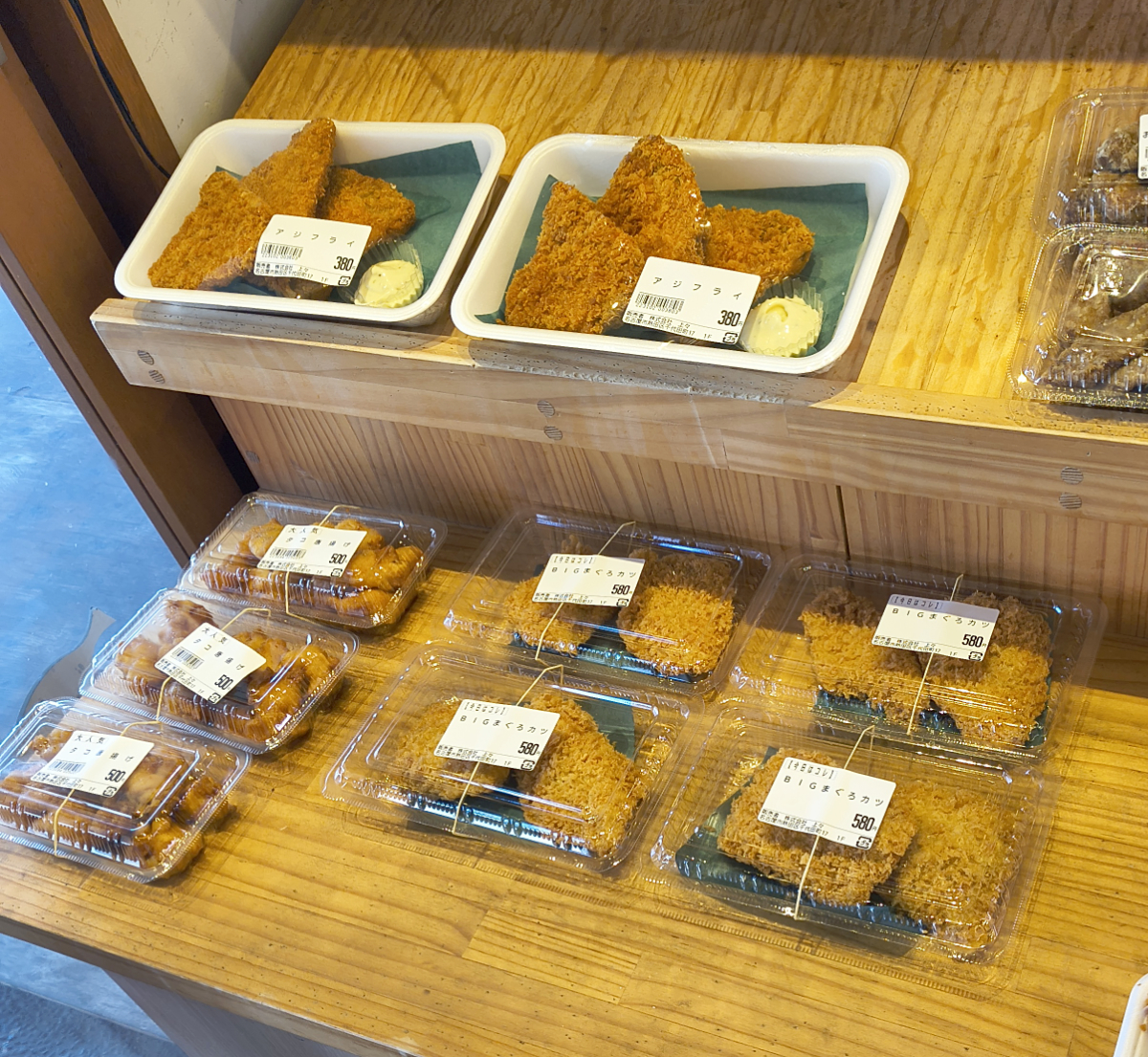 ふと横を見ると、揚げ物まであるじゃないの! どうしよう、刺身メインで行くかそれとも煮つけか。揚げ物でも良いんだけど。どれを軸に昼食のデッキを組んだら良いのか悩む~……。