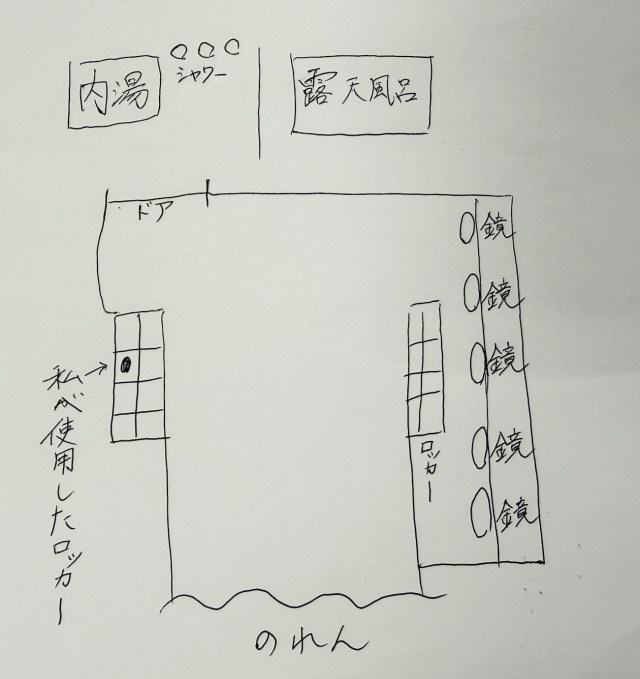 まさか私が女風呂に入ってしまったのだろうか……と、浴室を出てからのれんを確認すると、紺色の「M」と書かれたのれんが垂れている。間違えたのは女性の方だったようだ。