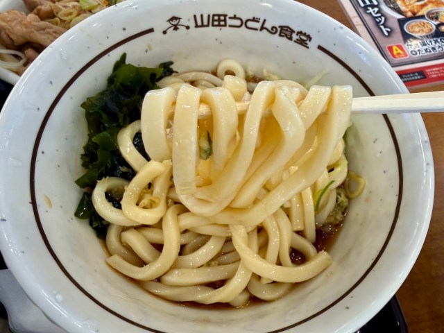 そして、たぬきうどんの安心感。やさしい出汁と柔らかめの麺が、カレーとの相性も抜群だ。ってか、セットなので「カレー」と「うどん」のどちらかが控えめなボリュームかと思いきや、どっちも普通にデカいのが山田。マジで腹いっぱいになるから注意。