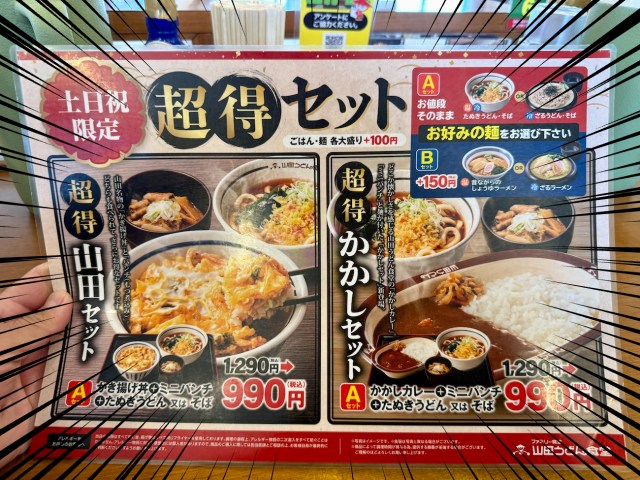 山田うどんといえば、平日限定の日替わりセットが有名。かくいう私も金曜日の「かつカレーセット(980円)」をよく頼むのだが、先日たまたま休日に訪れた店舗で信じられない光景を目にしてしまった。