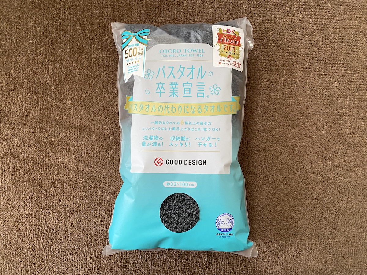 そこで用意したのが「バスタオル卒業宣言」。ハンズの1430円に対して、Amazonは1103円(購入当時)と安かったのでポチッて家まで届けてもらった。