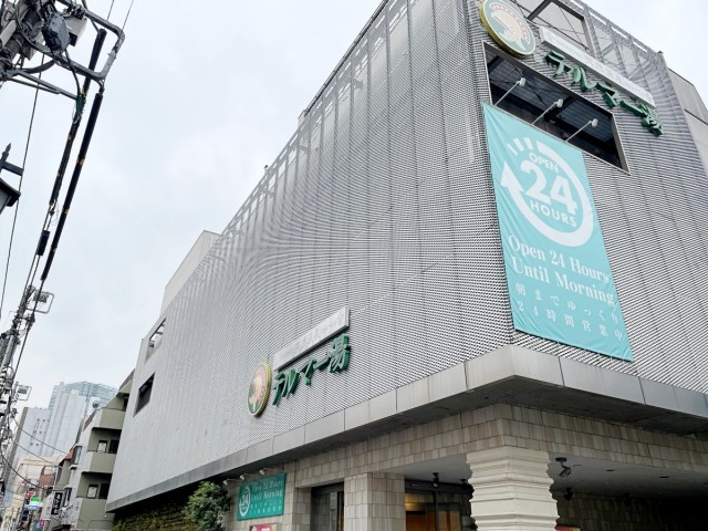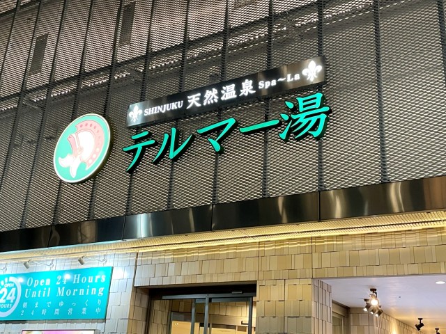 時刻は22時半。新宿ゴールデン街を進んでいくと、巨大な建物が姿を現す。年中無休&24時間営業の「テルマー湯 新宿店」だ。そして、その下で私を待っていたのが……。